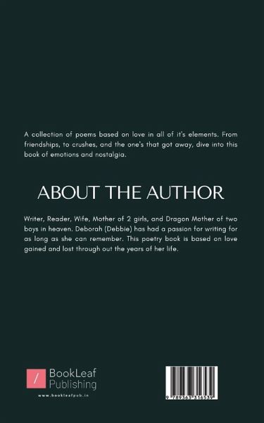 Writer, Reader, Wife, Mother of 2 girls, and Dragon Mother of two boys in heaven. Deborah (Debbie) has had a passion for writing for as long as she can remember. This poetry book is based on love gained and lost through out the years of her life.