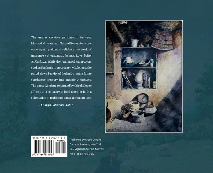 Unforgettable water colours by Masood Hussain of the landscapes and people of Kashmir, with sutra-like poetic gems from Irish poet Gabriel Rosenstock.