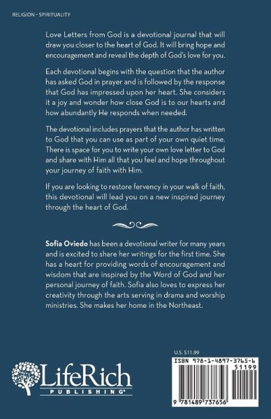 Love Letters from God is a devotional journal that will draw you closer to the heart of God. It will bring hope and encouragement and reveal the depth of God's love for you. Each devotional begins with the question that the author has asked God in prayer and is followed by the response that God has impressed upon her heart. She considers it a joy and wonder how close God is to our hearts and how abundantly He responds when needed. The devotional includes prayers that the author has written to God that you can use as part of your own quiet time. There is space for you to write your own love letter to God and share with Him all that you feel and hope throughout your journey of faith with Him. If you are looking to restore fervency in your walk of faith, this devotional will lead you on a new inspired journey through the heart of God.