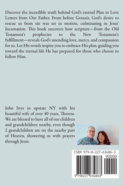 Discover the incredible truth behind God's eternal Plan in Love Letters from Our Father. From before Genesis, God's desire to rescue us from sin was set in motion, culminating in Jesus' Incarnation. This book uncovers how scripture-from the Old Testament's prophecies to the New Testament's fulfillment-reveals God's unending love, mercy, and compassion for us. Let His words inspire you to embrace His plan, guiding you toward the eternal life He has prepared for those who choose to follow Him.