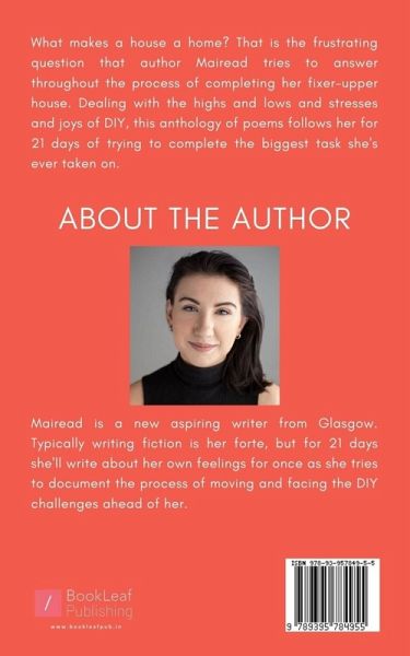 What makes a house a home? That is the frustrating question that author Mairead tries to answer throughout the process of completing her fixer-upper house. Dealing with the highs and lows and stresses and joys of DIY, this anthology of poems follows her for 21 days of trying to complete the biggest task she's ever taken on.