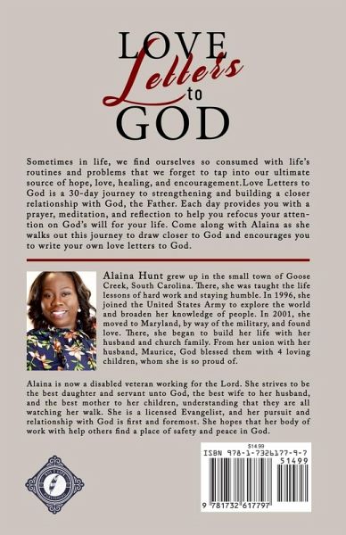 Sometimes in life, we find ourselves so consumed with life's routines and problems that we forget to tap into our ultimate source of hope, love, healing, and encouragement. Love Letters to God is a 30-day journey to strengthening and building a closer relationship with God, the Father. Each day provides you with a prayer, meditation, and reflection to help you refocus your attention on God's will for your life. Come along with Alaina as she walks out this journey to draw closer to God and encourages you to write your own love letters to God.