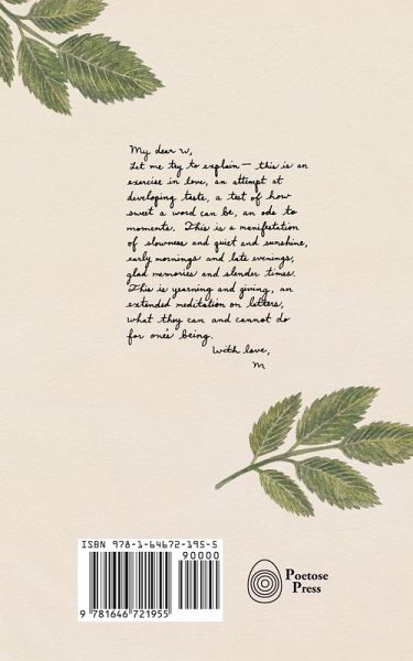 This is an exercise in love, an attempt at developing taste, a test of how sweet a word can be, an ode to moments. This is a manifestation of slowness and quiet and sunshine, early mornings and late evenings, glad memories and slender times. This is yearning and giving, an extended meditation on letters, what they can and cannot do for one's being. Meia Geddes’ LOVE LETTERS TO THE WORLD — a series of 120 lyrical missives — addresses the world as body, concept, and stranger. This collection is a quiet celebration and exploration of life, love, language, and one's place in the world.