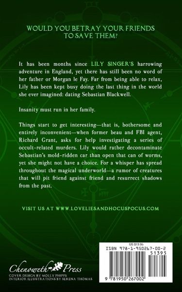 Would you betray your friends to save them? It has been months since Lily Singer's harrowing adventure in England, yet there has still been no word of her father or Morgan le Fay. Far from being able to relax, Lily has been kept busy doing the last thing in the world she ever imagined: dating Sebastian Blackwell. Insanity must run in her family. Things start to get interesting-that is, bothersome and entirely inconvenient-when former beau and FBI agent, Richard Grant, asks for help investigating a series of occult-related murders. Lily would rather decontaminate Sebastian's mold-ridden car than open that can of worms, yet she might not have a choice. For a whisper has spread throughout the magical underworld-a rumor of creatures that will pit friend against friend and resurrect shadows from the past.