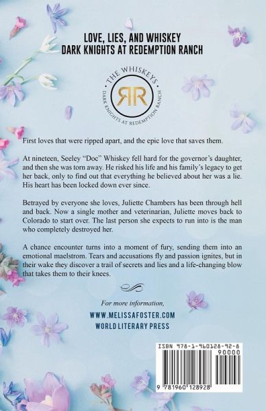Get ready to fall hard for the mysterious Seeley "Doc" Whiskey and the one woman he never thought would walk back into his life, in this sexy and emotional second-chance standalone romance. The Whiskeys: Dark Knights at Redemption Ranch is a small-town, big-family series of standalone romance novels featuring fiercely loyal, insanely sexy bikers who give horses-and people-a second chance. No cliffhangers, no cheating, and a happily ever after that will leave you breathless. First loves that were ripped apart, and the epic love that saves them. At nineteen, Seeley "Doc" Whiskey fell hard for the governor's daughter, and then she was torn away. He risked his life and his family's legacy to get her back, only to find out that everything he believed about her was a lie. His heart has been locked down ever since. Betrayed by everyone she loves, Juliette Chambers has been through hell and back. Now a single mother and veterinarian, Juliette moves back to Colorado to start over. The last person she expects to run into is the man who completely destroyed her. A chance encounter turns into a moment of fury, sending them into an emotional maelstrom. Tears and accusations fly and passion ignites, but in their wake they discover a trail of secrets and lies and a life-changing blow that takes them to their knees. The Whiskeys: Dark Knights at Redemption Ranch The Trouble with Whiskey Freeing Sully (Prequel to For the Love of Whiskey) For the Love of Whiskey A Taste of Whiskey Love, Lies, and Whiskey My Whiskey Redemption More coming soon... ** While you're waiting for more Dark Knights at Redemption Ranch, get to know their cousins. The Whiskeys: Dark Knights at Peaceful Harbor The Wickeds: Dark Knights at Bayside **Don't miss River of Love (The Bradens at Peaceful Harbor), the first story in which the Whiskeys at Peaceful Harbor were introduced, and Searching for Love (The Bradens & Montgomerys), the first story in which the Whiskeys at Redemption Ranch were introduced. Read the entire Love in Bloom big-family romance collection. Characters from each sub-series appear in future books/series. Snow Sisters The Bradens The Bradens & The Montgomerys The Remingtons The Ryders Seaside Summers Bayside Summers The Steeles at Silver Island Sugar Lake (Kindle Unlimited) Harmony Pointe (KU) Silver Harbor (KU) Wild Billionaires After Dark Bad Billionaires After Dark Harborside Nights The Whiskeys: Dark Knights at Peaceful Harbor The Wickeds: Dark Knights at Bayside