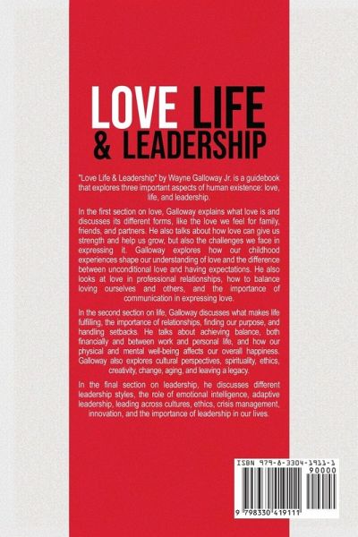 "Love Life & Leadership" by Wayne Galloway Jr. is a guidebook that explores three important aspects of human existence: love, life, and leadership. In the first section on love, Galloway explains what love is and discusses its different forms, like the love we feel for family, friends, and partners. He also talks about how love can give us strength and help us grow, but also the challenges we face in expressing it. Galloway explores how our childhood experiences shape our understanding of love and the difference between unconditional love and having expectations. He also looks at love in professional relationships, how to balance loving ourselves and others, and the importance of communication in expressing love. In the second section on life, Galloway discusses what makes life fulfilling, the importance of relationships, finding our purpose, and handling setbacks. He talks about achieving balance, both financially and between work and personal life, and how our physical and mental well-being affects our overall happiness. Galloway also explores cultural perspectives, spirituality, ethics, creativity, change, aging, and leaving a legacy. In the final section on leadership, he discusses different leadership styles, the role of emotional intelligence, adaptive leadership, leading across cultures, ethics, crisis management, innovation, and the importance of leadership in our lives.