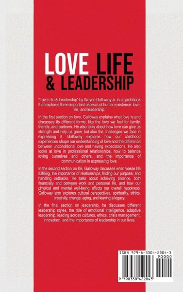 "Love Life & Leadership" by Wayne Galloway Jr. is a guidebook that explores three important aspects of human existence: love, life, and leadership. In the first section on love, Galloway explains what love is and discusses its different forms, like the love we feel for family, friends, and partners. He also talks about how love can give us strength and help us grow, but also the challenges we face in expressing it. Galloway explores how our childhood experiences shape our understanding of love and the difference between unconditional love and having expectations. He also looks at love in professional relationships, how to balance loving ourselves and others, and the importance of communication in expressing love. In the second section on life, Galloway discusses what makes life fulfilling, the importance of relationships, finding our purpose, and handling setbacks. He talks about achieving balance, both financially and between work and personal life, and how our physical and mental well-being affects our overall happiness. Galloway also explores cultural perspectives, spirituality, ethics, creativity, change, aging, and leaving a legacy. In the final section on leadership, he discusses different leadership styles, the role of emotional intelligence, adaptive leadership, leading across cultures, ethics, crisis management, innovation, and the importance of leadership in our lives.