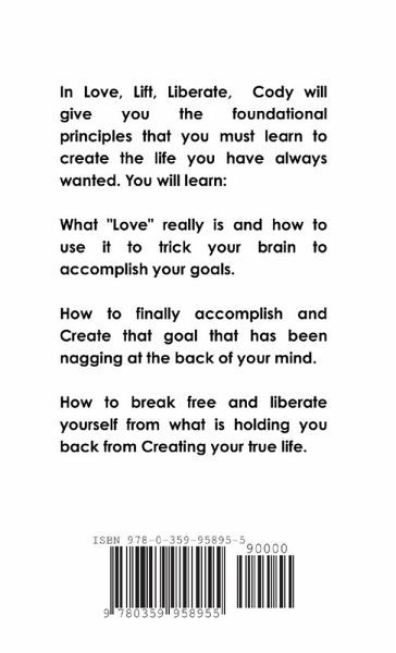 In Love, Lift, Liberate, Cody will give you the foundational principles that you must learn to create the life you have always wanted. You will learn: What LOVE really is and how to use it to power your brain to create your goals. How to use the concept of LIFT to accomplish more than you have ever thought possible How to break free and LIBERATE yourself from what is holding you back from Becoming who you were meant to Become
