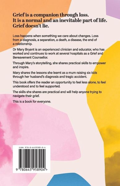 Grief is a companion through loss. It is a normal and an inevitable part of life. Grief doesn't lie. Loss happens when something we care about changes. Loss from a diagnosis, a separation, a death, a disease, the end of a relationship.Dr Mary Bryant is an experienced clinician and educator, who has worked and continues to work at several hospitals as a Grief and Bereavement Counsellor. Through Mary's storytelling, she shares practical skills to empower and inspire.Mary shares the lessons she learnt as a mum raising six kids through her husband's diagnosis and tragic accident. This book offers the reader an opportunity to feel less alone, to feel understood and to feel supported.The skills she shares are practical and will help anyone trying to navigate their grief. This is a book for everyone.