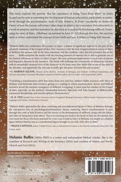 This study explores the premise that the experience of being "born from above" in John's Gospel can be seen as mirroring the development of human subjectivity, particularly as understood through the psychoanalytic work of Julia Kristeva. It draws specifically on Kristeva's theory of how the human self/subject takes shape in infancy, her contention that subjectivity is a work in progress, and her insistence on abjection as a catalyst for developing selfhood. Examining the story of Mary of Bethany (as narrated in John 11-12) through this lens, this analysis seeks to better understand the concept of new birth and how it relates to being fully human.