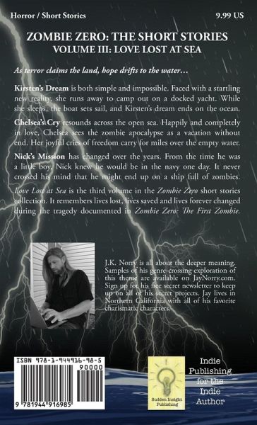 As terror claims the land, hope drifts to the water... Kirsten's Dream is both simple and impossible. Faced with a startling new reality, she runs away to camp out on a docked yacht. While she sleeps, the boat sets sail, and Kirsten's dream ends on the ocean. Chelsea's Cry resounds across the open sea. Happily and completely in love, Chelsea sees the zombie apocalypse as a vacation without end. Her joyful cries of freedom carry for miles over the empty water. Nick's Mission has changed over the years. From the time he was a little boy, Nick knew he would be in the navy one day. It never crossed his mind that he might end up on a ship full of zombies. Love Lost at Sea is the third volume in the Zombie Zero short stories collection. It remembers lives lost, lives saved and lives forever changed during the tragedy documented in Zombie Zero: The First Zombie.