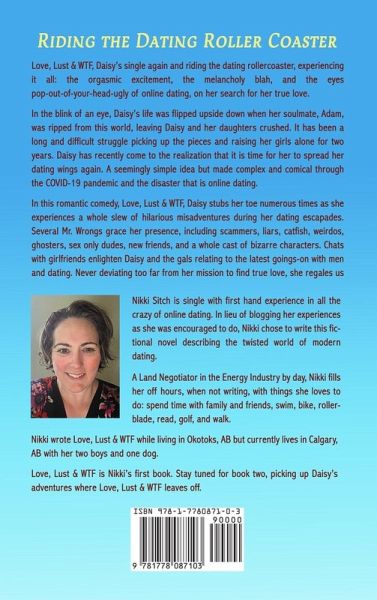 Product Description Love, Lust & WTF, Daisy's single again and riding the dating rollercoaster, experiencing it all: the orgasmic excitement, the melancholy blah, and the eyes pop-out-of-your-head-ugly of online dating, on her search for her true love. In the blink of an eye, Daisy's life was flipped upside down when her soulmate, Adam, was ripped from this world, leaving Daisy and her daughters crushed. It has been a long and difficult struggle picking up the pieces and raising her girls alone for two years. Daisy has recently come to the realization that it is time for her to spread her dating wings again. A seemingly simple idea but made complex and comical through the COVID-19 pandemic and the disaster that is online dating. In this romantic comedy, Love, Lust & WTF, Daisy stubs her toe numerous times as she experiences a whole slew of hilarious misadventures during her dating escapades. Several Mr. Wrongs grace her presence, including scammers, liars, catfish, weirdos, ghosters, sex only dudes, new friends, and a whole cast of bizarre characters. Chats with girlfriends enlighten Daisy and the gals relating to the latest goings-on with men and dating. Never deviating too far from her mission to find true love, she regales us with her lusty tales of sexual exploration and adventure. But, will Daisy ever, ever, EVER find true love? 2nd Edition About the Author Nikki Sitch has first hand experience in all the crazy of online dating. In lieu of blogging her experiences as she was encouraged to do, Nikki was inspired by those experiences to write this fictional novel describing the twisted world of modern dating. A Land Negotiator in the Energy Industry by day, Nikki fills her off hours, when not writing, with things she loves to do: spend time with family and friends, swim, bike, rollerblade, read, golf, and walk. Nikki wrote Love, Lust & WTF while living in Okotoks, AB but currently lives in Calgary, AB with her two boys and one dog. Love, Lust & WTF is Nikki's first book. Stay tuned for book two, picking up Daisy's adventures where Love, Lust & WTF leaves off.