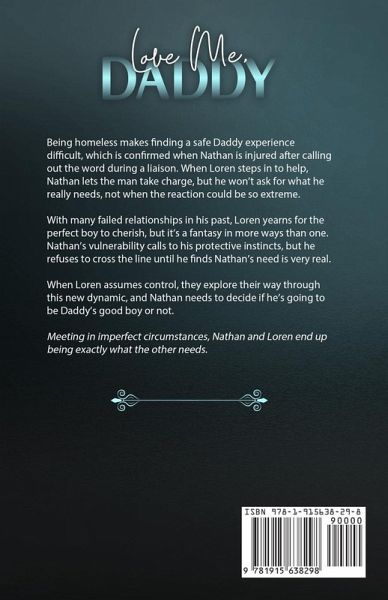 Being homeless makes finding a safe Daddy experience difficult, which is confirmed when Nathan is injured after calling out the word during a liaison. When Loren steps in to help, Nathan lets the man take charge, but he won't ask for what he really needs, not when the reaction could be so extreme. With many failed relationships in his past, Loren yearns for the perfect boy to cherish, but it's a fantasy in more ways than one. Nathan's vulnerability calls to his protective instincts, but he refuses to cross the line until he finds Nathan's need is very real. When Loren assumes control, they explore their way through this new dynamic, and Nathan needs to decide if he's going to be Daddy's good boy or not. Meeting in imperfect circumstances, Nathan and Loren end up being exactly what the other needs. This is a low angst, sweet Daddy/boy romance