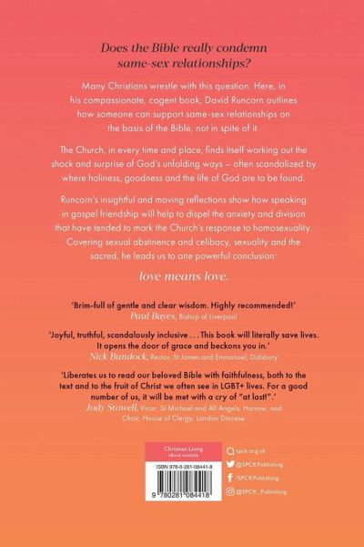 Explores how someone for whom the Bible is central can hold an including view of same-sex relationships and marriage on the basis of the Bible - and not bypass it.