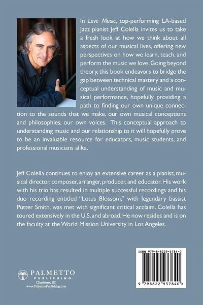 From top-performing Jazz pianist Jeff Colella comes this groundbreaking book on music theory, skill development, and the art of improvisation. Jeff Colella is one of California's most in-demand Jazz pianists. His post-bop style has granted him multiple tours, a faculty position, and a widely successful career as both a performer and a producer. In Love Music, Colella lets readers in on his personal musical philosophy and conception, helping aspiring professionals and veterans alike to understand some of the most profound truths of musical performance. Bringing together actionable techniques with research-supported theory, the book promises to broaden our perspectives on how we learn, teach and perform the music we love. Readers will learn:Advanced learning and piano techniques Appropriate forms of expression for a given performance The importance of our conception of time How improvisation comes from an understanding of harmony and form Why listening skills are critical to our learning, understanding and performance A path to finding our own unique musical voices Colella offers fresh new perspectives on how to use theoretical knowledge, where its limits reside, and how to tap into music-making that comes from the soul. As a decades-long teacher and practitioner of his art, he brings ample experience to the table. With ideas suitable for every musical style and genre, Love Music will be a go-to resource for teachers, students, and performers of all levels.
