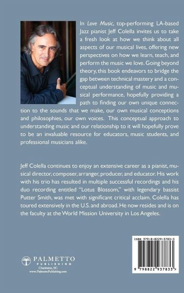 From top-performing Jazz pianist Jeff Colella comes this groundbreaking book on music theory, skill development, and the art of improvisation. Jeff Colella is one of California's most in-demand Jazz pianists. His post-bop style has granted him multiple tours, a faculty position, and a widely successful career as both a performer and a producer. In Love Music, Colella lets readers in on his personal musical philosophy and conception, helping aspiring professionals and veterans alike to understand some of the most profound truths of musical performance. Bringing together actionable techniques with research-supported theory, the book promises to broaden our perspectives on how we learn, teach and perform the music we love.. Readers will learn:Advanced learning and piano techniques Appropriate forms of expression for a given performance The importance of our conception of time How improvisation comes from an understanding of harmony and form Why listening skills are critical to our learning, understanding and performance A path to finding our own unique musical voices Colella offers fresh new perspectives on how to use theoretical knowledge, where its limits reside, and how to tap into music-making that comes from the soul. As a decades-long teacher and practitioner of his art, he brings ample experience to the table. With ideas suitable for every musical style and genre, Love Music will be a go-to resource for teachers, students, and performers of all levels.