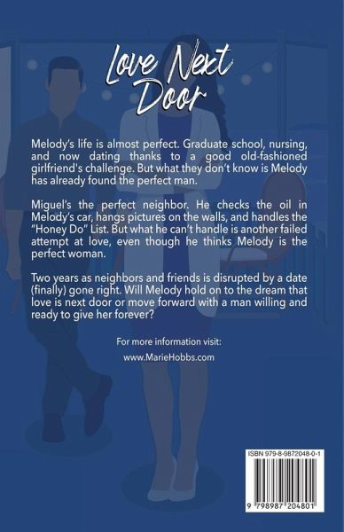 Melody's life is almost perfect. Graduate school, nursing, and now dating thanks to a good old-fashioned girlfriend's challenge. But what they don't know is Melody has already found the perfect man. Miguel's the perfect neighbor. He checks the oil in Melody's car, hangs pictures on the walls, and handles the "Honey Do" List. But what he can't handle is another failed attempt at love, even though he thinks Melody is the perfect woman. Two years as neighbors and friends is disrupted by a date (finally) gone right. Will Melody hold on to the dream that love is next door or move forward with a man willing and ready to give her forever?