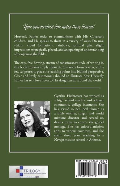 Have you received love notes from heaven? Heavenly Father seeks to communicate with His Covenant children, and He speaks to them in a variety of ways. Dreams, visions, cloud formations, rainbows, spiritual gifts, slight impressions strategically placed, and an opening of understanding after opening the Bible. The easy, free-flowing, stream of consciousness style of writing in this book explains simply about the love notes from heaven, with a few scriptures to place the teaching points into biblical perspective. Clear and lively testimonies abound to illustrate how Heavenly Father has sent love notes to His daughters all around the world.