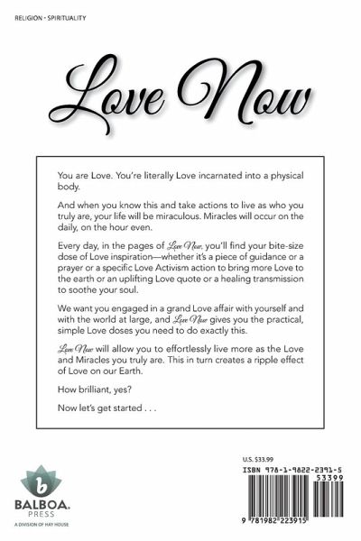 You are love. You're literally love incarnated into a physical body. And when you know this and take actions to live as who you truly are, your life will be miraculous. Miracles occur on the daily, on the hour even. Every day, in the pages of Love Now, you'll find your bite-size dose of love inspiration-whether it's a piece of guidance or a prayer or a specific love activism action to bring more love to the earth or an uplifting love quote or a healing transmission to soothe your soul. We want you engaged in a grand love affair with yourself and with the world at large, and Love Now gives you the practical, simple love doses you need to do exactly this. Love Now will allow you to effortlessly live more as the love and miracle you truly are. This in turn creates a ripple effect of love on our earth. How brilliant, yes? Now let's get started . . .