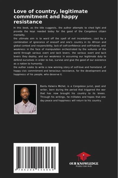 In this book, as the title suggests, the author attempts to shed light and provide the keys needed today for the good of the Congolese citizen mentality.the ultimate aim is to ward off the spell of evil incantations, cast by a combination of ignorance of oneself and one's country in its African and global context and responsibility, lack of self-confidence and self-hatred, and weakness in the face of manipulation orchestrated by the vultures of the world through various overt and tacit levers. the various overt and tacit levers they deploy, and our weakness in assuming our legitimate duty to defend ourselves in order to live, survive and give the good of our existence as a nation to humanity.the author seeks to write a new winning story of self-love and homeland, of happy civic commitment and tenacious resistance, for the development and happiness of his people, who deserve it.