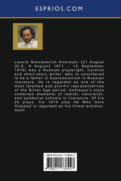 Leonid Nikolaievich Andreyev (21 August [O. S. 9 August] 1871 - 12 September 1919) was a Russian playwright, novelist and short-story writer, who is considered to be a father of Expressionism in Russian literature. He is regarded as one of the most talented and prolific representatives of the Silver Age period. Andreyev's style combines elements of realist, naturalist, and symbolist schools in literature. Of his 25 plays, his 1915 play He Who Gets Slapped is regarded as his finest achievement.