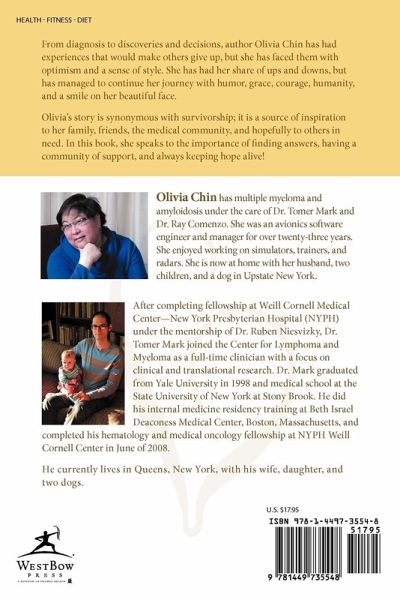 From diagnosis to discoveries and decisions, author Olivia Chin has had experiences that would make others give up, but she has faced them with optimism and a sense of style. She has had her share of ups and downs, but has managed to continue her journey with humor, grace, courage, humanity, and a smile on her beautiful face. Olivia's story is synonymous with survivorship; it is a source of inspiration to her family, friends, the medical community, and hopefully to others in need. In this book, she speaks to the importance of finding answers, having a community of support, and always keeping hope alive!…mehr