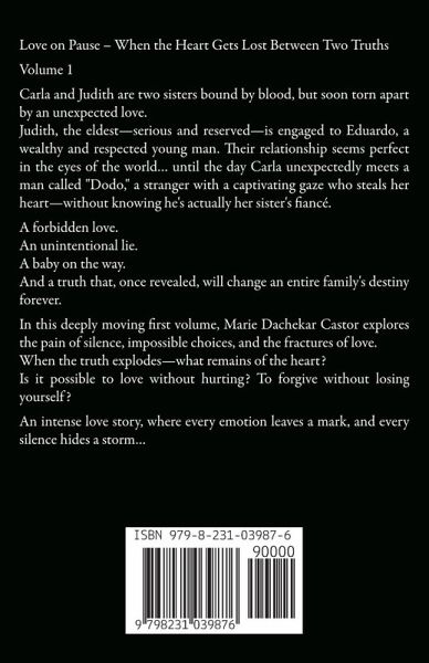 Love on Pause - When the Heart Gets Lost Between Two Truths Volume 1 Carla and Judith are two sisters bound by blood, but soon torn apart by an unexpected love. Judith, the eldest-serious and reserved-is engaged to Eduardo, a wealthy and respected young man. Their relationship seems perfect in the eyes of the world... until the day Carla unexpectedly meets a man called "Dodo," a stranger with a captivating gaze who steals her heart-without knowing he's actually her sister's fiancé. A forbidden love. An unintentional lie. A baby on the way. And a truth that, once revealed, will change an entire family's destiny forever. In this deeply moving first volume, Marie Dachekar Castor explores the pain of silence, impossible choices, and the fractures of love. When the truth explodes-what remains of the heart? Is it possible to love without hurting? To forgive without losing yourself? An intense love story, where every emotion leaves a mark, and every silence hides a storm...