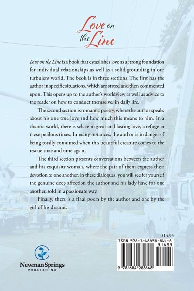 Love on the Line is a book that establishes love as a strong foundation for individual relationships as well as a solid grounding in our turbulent world. The book is in three sections. The first has the author in specific situations, which are stated and then commented upon. This opens up to the author's worldview as well as advice to the reader on how to conduct themselves in daily life. The second section is romantic poetry, where the author speaks about his one true love and how much this means to him. In a chaotic world, there is solace in great and lasting love, a refuge in these perilous times. In many instances, the author is in danger of being totally consumed when this beautiful creature comes to the rescue time and time again. The third section presents conversations between the author and his exquisite woman, where the pair of them express their devotion to one another. In these dialogues, you will see for yourself the genuine deep affection the author and his lady have for one another, told in a passionate way. Finally, there is a final poem by the author and one by the girl of his dreams.