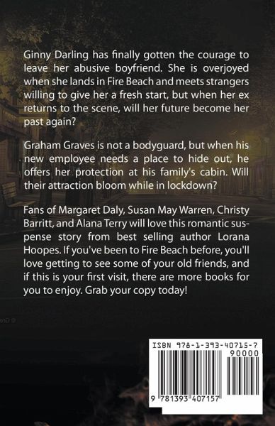 A woman on the run, a man willing to help, a cabin by the lake... Ginny Darling has finally gotten the courage to leave her abusive boyfriend. She is overjoyed when she lands in Fire Beach and meets strangers willing to give her a fresh start, but when her ex returns to the scene, will her future become her past again? Graham Graves is not a bodyguard, but when his new employee needs a place to hide out, he offers her protection at his family's cabin. Will their attraction bloom while in lockdown? Fans of Margaret Daly, Susan May Warren, Christy Barritt, and Alana Terry will love this romantic suspense story from best selling author Lorana Hoopes. If you've been to Fire Beach before, you'll love getting to see some of your old friends, and if this is your first visit, there are more books for you to enjoy. Grab your copy today!