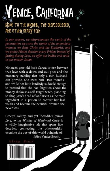 Venice, California Home to the broken, the dispossessed, and other scary folk. In our prayers, we mispronounce the words of the paternoster; we curse the womb of the anomalous woman; we deny Christ and the Eucharist, and we praise Pilate’s decision every Friday. Instead of fasting during Lent, we offer our bodies and souls to our master, Satan. Nineteen-year-old Josie García is torn between true love with a down-and-out poet and the monetary stability that only a rich husband can provide. She owes renttwo monthsand while her little landlady is docile enough to pretend that she has forgotten about the money, she’s also a self-taught witch, planning to chop Josie’s head off and use it as the main ingredient in a potion to recover her lost youth and become the beautiful woman she never was. Creepy, campy, and yet incredibly lyrical, Love, or the Witches of Windward Circle is a wildly imaginative tale that spans five decades, connecting the otherworldly occult to the out-of-this-world bohemia of fiftiies Venice Beach.