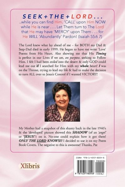 S E E K + T H E + L O R D... ..while you can find Him. 'CALL' upon Him NOW while He is near ...Let Them turn to The Lord that He may have 'MERCY' upon Them ...for He WILL 'Abundantly' Pardon! (Isaiah 55:6 7) The Lord knew what lay ahead of me ~ for BOTH my Dad & Step-Dad died in early 1999. He began to have me write 'Love' Poems from His Heart. Also showing me that His Timing is perfect in our Lives if we are, on purpose, seeking to Follow Him. I felt I had been exiled into the desert & only GOD could lead me out if I searched for Him with my whole heart! I was on the Throne, trying to lead my life & had to make the decision to turn ALL over to Jesus's Control if I wanted VICTORY!