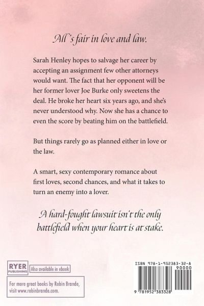 Lawyer Sarah Henley hopes to salvage her career by accepting an assignment few other attorneys would want. The fact that her opponent will be her former lover Joe Burke only sweetens the deal. He broke her heart six years ago, and she's never understood why. Now she has a chance to even the score by beating him on the battlefield. But things rarely go as planned either in love or the law. A smart, sexy contemporary romance about first loves, second chances, and what it takes to turn an enemy into a lover. A hard-fought lawsuit isn't the only battlefield when your heart is at stake.