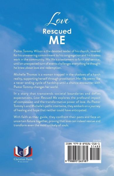 Pastor Tommy Wilson is the devoted leader of his church, revered for his unwavering commitment to his congregation and his tireless work in the community. His life is a testament to faith and service, until an unexpected turn of events challenges everything he thought he knew about love and redemption.Michelle Thomas is a woman trapped in the shadows of a harsh reality, supporting herself through prostitution. Her life seems like a never-ending cycle of hardship until a chance encounter with Pastor Tommy changes her world.In a story that transcends societal boundaries and defies expectations, Love Rescued Me explores the profound impact of compassion and the transformative power of love. As Pastor Tommy's and Michelle's paths intertwine, they embark on a journey of healing and hope that neither could have anticipated.With faith as their guide, they confront their pasts and face an uncertain future together, proving that love can indeed rescue and transform even the most unlikely of souls.