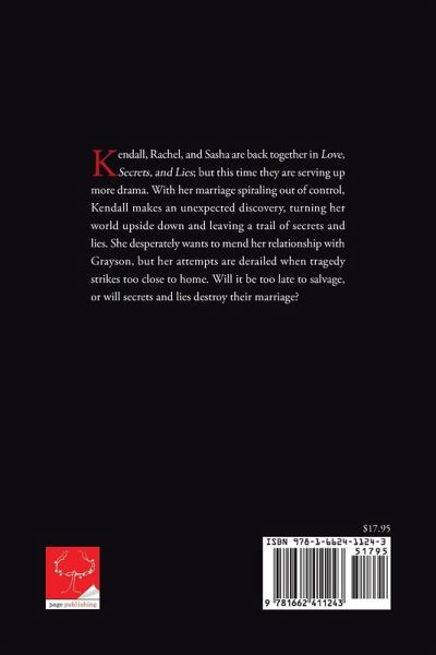 Kendall, Rachel, and Sasha are back together in Love, Secrets, and Lies; but this time they are serving up more drama. With her marriage spiraling out of control, Kendall makes an unexpected discovery, turning her world upside down and leaving a trail of secrets and lies. She desperately wants to mend her relationship with Grayson, but her attempts are derailed when tragedy strikes too close to home. Will it be too late to salvage, or will secrets and lies destroy their marriage?