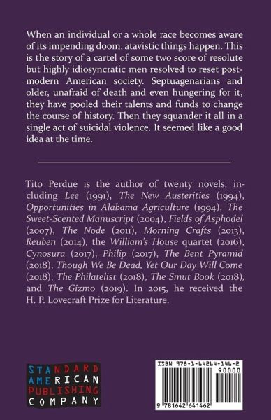 When an individual or a whole race becomes aware of its impending doom, atavistic things happen. This is the story of a cartel of some two score of resolute but highly idiosyncratic men resolved to reset post-modern American society. Septuagenarians and older, unafraid of death and even hungering for it, they have pooled their talents and funds to change the course of history. Then they squander it all in a single act of suicidal violence. It seemed like a good idea at the time.