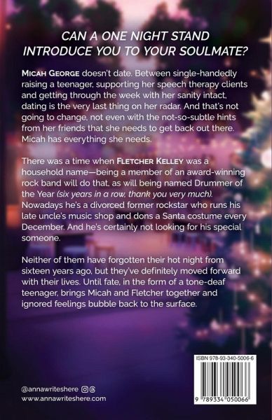 Can a one night stand introduce you to your soulmate? Micah George doesn't date. Between single-handedly raising a teenager, supporting her speech therapy clients and getting through the week with her sanity intact, dating is the very last thing on her radar. And that's not going to change, not even with the not-so-subtle hints from her friends that she needs to get back out there. Micah has everything she needs. There was a time when Fletcher Kelley was a household name-being a member of an award-winning rock band will do that, as will being named Drummer of the Year (six years in a row, thank you very much). Nowadays he's a divorced former rockstar who runs his late uncle's music shop and dons a Santa costume every December. And he's certainly not looking for his special someone. Neither of them have forgotten their hot night from sixteen years ago, but they've definitely moved forward with their lives. Until fate, in the form of a tone-deaf teenager, brings Micah and Fletcher together and ignored feelings bubble back to the surface.