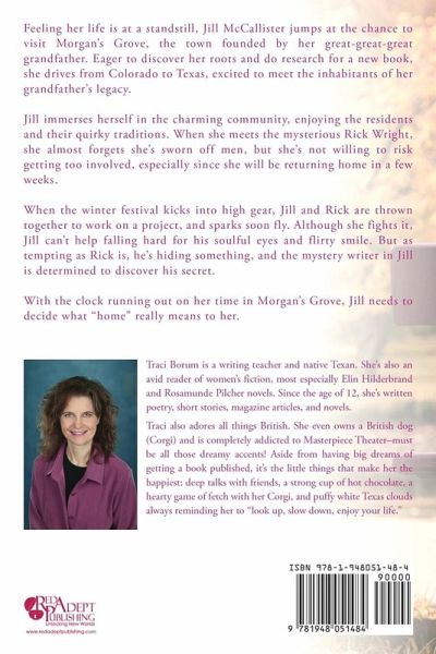 A Morgan's Grove Novel: Book 1 Feeling her life is at a standstill, Jill McCallister jumps at the chance to visit Morgan's Grove, the town founded by her great-great-great grandfather. Eager to discover her roots and do research for a new book, she drives from Colorado to Texas, excited to meet the inhabitants of her grandfather's legacy. Jill immerses herself in the charming community, enjoying the residents and their quirky traditions. When she meets the mysterious Rick Wright, she almost forgets she's sworn off men, but she's not willing to risk getting too involved, especially since she will be returning home in a few weeks. When the winter festival kicks into high gear, Jill and Rick are thrown together to work on a project, and sparks soon fly. Although she fights it, Jill can't help falling hard for his soulful eyes and flirty smile. But as tempting as Rick is, he's hiding something, and the mystery writer in Jill is determined to discover his secret. With the clock running out on her time in Morgan's Grove, Jill needs to decide what "home" really means to her.