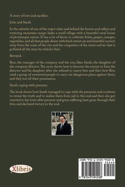A story of love and sacrifice. John and Sarah In the suburbs of one of the major cities and behind the forests and valleys and towering mountain ranges hides a small village with a beautiful rural house of picturesque nature. It has a lot of farms to cultivate fruits, grapes, oranges, vegetables, and all that people desire with fresh nature air and beautiful scenery away from the noise of the city and the congestion of the street and air that is polluted all the time by vehicles' fuel. Betrayal. Ron, the manager of the company and the one, likes Sarah, the daughter of the company director. The story shows how to become the enemy to Sam the director and his daughter after she refused to marry him and then how Ron used a group of unwanted people to carry out dangerous plans against them, and they lost all their possessions. Sarah coping with pressure. The book shows how Sarah managed to cope with the pressures and continue to reveal the truth and to realise them from jail in the end and then she got married to her lover after pressure and great suffering have gone through their lives and declared victory in the end.