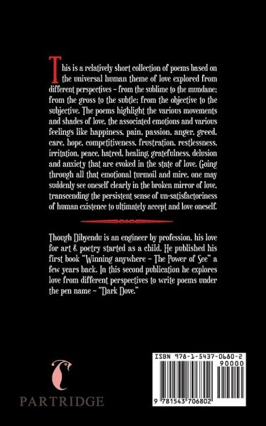 This is a relatively short collection of poems based on the universal human theme of love explored from different perspectives - from the sublime to the mundane; from the gross to the subtle; from the objective to the subjective. The poems highlight the various movements and shades of love, the associated emotions and various feelings like happiness, pain, passion, anger, greed, care, hope, competitiveness, frustration, restlessness, irritation, peace, hatred, healing, gratefulness, delusion and anxiety that are evoked in the state of love. Going through all that emotional turmoil and mire, one may suddenly see oneself clearly in the broken mirror of love, transcending the persistent sense of un-satisfactoriness of human existence to ultimately accept and love oneself.