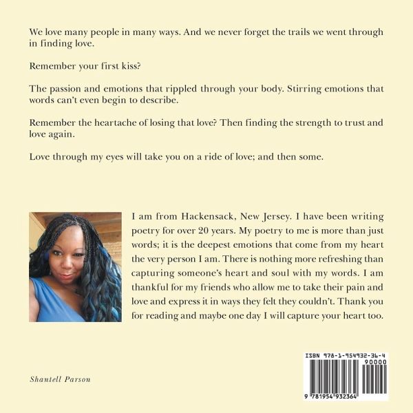 We love many people in many ways. And we never forget the trails we went through in finding love. Remember your first kiss? The passion and emotions that rippled through your body. Stirring emotions that words can't even begin to describe. Remember the heartache of losing that love? Then finding the strength to trust and love again. Love through my eyes will take you on a ride of love; and then some.