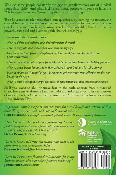 Love to Grow offers you the specific ingredients needed to permanently improve your business or personal results. You will learn how to identify your individual money style, the seven steps to wealth creation, and how to manage business growth and leadership issues. While most self-help books only explain what to do, Love to Grow also adds why your wealth-creation efforts may not have worked in the past. It explains what to focus on, why to do that, and how to review and adapt to your individual circumstances in a practical, powerful way. Part II of the book explains how to apply your financial beliefs and actions to your leadership and customize them to different stages in your business growth. Aimed primarily at small to medium-sized business owners, this powerful guide can help anyone who wants to improve their financial circumstances. All you have to do is learn and apply the secrets of Love to Grow and you will achieve your desired version of wealth.
