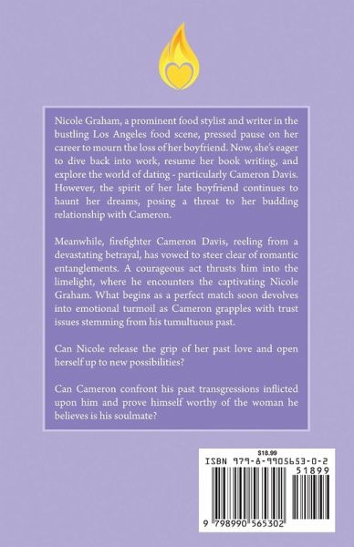 Nicole Graham, a prominent food stylist and writer in the Los Angeles food scene, has thrived in the creative chaos of her career. Her meticulously evocative food narratives have earned her top billing. But her world was shattered by the sudden loss of her boyfriend, plunging her into a period of profound mourning. After taking a step back from the limelight to grieve, Nicole is now determined to reclaim her life. She's ready to dive back into work, resume writing her cookbook, and explore the possibility of new love-particularly with the intriguing firefighter, Cameron Davis. Cameron Davis, known for his bravery and dedication as a firefighter, has recently become a reluctant local hero. His daring rescue of a baby from a burning building has thrust him into the public eye, but behind his stoic exterior lies a man deeply scarred by betrayal. A past relationship left Cameron with severe trust issues, leading him to swear off romantic entanglements. However, meeting Nicole Graham sparks something within him he thought long extinguished. Their initial encounters are electric, filled with shared laughter and a surprising sense of connection. Nicole, captivated by Cameron's strength and kindness, begins to envision a future where she can love again. Yet, as their relationship deepens, Nicole's nights become plagued by dreams of her late boyfriend. His spirit seems to haunt her, a ghostly reminder of the love she lost, casting a shadow over her budding romance with Cameron. Cameron, on the other hand, struggles with his own demons. The betrayal he faced in his past relationship left deep wounds, making it hard for him to fully trust again. His feelings for Nicole are undeniable, but every step closer to her feels like facing old fears and insecurities. The perfect match they seemed destined to be soon spirals into emotional chaos as both grapple with their pasts. Nicole's journey requires releasing the grip of a love that is no longer physically present but still profoundly affects her heart. She must confront her dreams, decipher their meanings, and find a way to release her late boyfriend's hold on her heart. It's a delicate balance of letting go and holding on, of mourning and moving forward. Cameron's path is no less challenging. To open his heart to Nicole, he must confront his betrayal, reassess the barriers he's built, and find the courage to love again. It's a test of his resolve and a measure of his willingness to be vulnerable despite the risk of getting hurt again. Their stories intertwine in a poignant dance of love, loss, and redemption. Nicole and Cameron's relationship becomes a crucible where past wounds are either healed or deepened. As they navigate the complexities of their emotions, they discover that the road to love is often filled with obstacles but can lead to profound personal growth and unexpected happiness. Can Nicole release the lingering specter of her past love and open herself to the new possibilities that Cameron represents? Can Cameron overcome his trust issues and prove to himself and to Nicole that he is worthy of the soulmate he believes her to be? In this heartfelt and emotionally charged novel, both must confront their deepest fears and desires to find out if love can indeed conquer all.