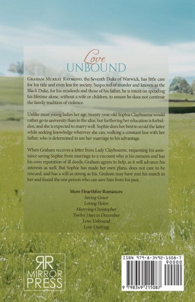 Graham Murray Raymond, the Seventh Duke of Warwick, has little care for his title and even less for society. Suspected of murder and known as the Black Duke, for his misdeeds and those of his father, he is intent on spending his lifetime alone, without a wife or children, to ensure he does not continue the family tradition of violence. Unlike most young ladies her age, twenty-year-old Sophia Claybourne would rather go to university than to the altar, but furthering her education is forbidden, and she is expected to marry well. Sophie does her best to avoid the latter while seeking knowledge wherever she can, walking a constant line with her father, who is determined to use her marriage to his advantage. When Graham receives a letter from Lady Claybourne, requesting his assistance saving Sophie from marriage to a viscount who is his nemesis and has his own reputation of ill deeds, Graham agrees to help, as it will advance his interests as well. But Sophie has made her own plans, does not care to be rescued, and has a will as strong as his. Graham may have met his match in her and found the one person who can save him from his past. More Hearthfire Romances: Saving Grace Loving Helen Marrying Christopher Love Unbound Love Undying (coming Summer 2025) Twelve Days in December