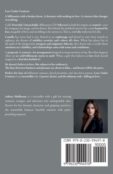 Love Under Contract A billionaire with a broken heart. A dreamer with nothing to lose. A contract that changes everything. Cold. Powerful. Untouchable. Billionaire CEO Stheven has built his empire on control-over his company, his image, and his desires. But behind the polished exterior lies a man haunted by loss, incapable of love, and unwilling to let anyone in. That is, until she walks into his life. Camilla has never had it easy. Raised in an orphanage and forced to start from scratch at eighteen, she dreams of stability, security, and-above all-love. When fate places her in the path of the dangerously arrogant and enigmatic Stheven, she's drawn into a world where emotions are a liability, and relationships come with terms and conditions. A proposal. A contract. An arrangement designed to keep emotions at bay. But what happens when an ice-cold billionaire starts to melt? When a girl who believes in love finds herself trapped in a deal that forbids it? He doesn't believe in love. She refuses to live without it. The lines between business and pleasure are about to blur... and hearts will be the price. Perfect for fans of billionaire romance, forced proximity, and slow-burn passion, Love Under Contract is an irresistible tale of power, desire, and the ultimate risk-falling in love.