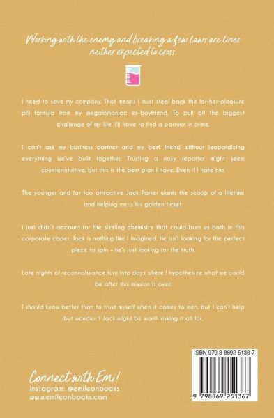 Working with the enemy and breaking a few laws are lines neither expected to cross. I need to save my company. That means I must steal back the for-her-pleasure pill formula from my megalomaniac ex-boyfriend. To pull off the biggest challenge of my life, I'll have to find a partner in crime. I can't ask my business partner and my best friend without jeopardizing everything we've built together. Trusting a nosy reporter might seem counterintuitive, but this is the best plan I have. Even if I hate him. The younger and far too attractive Jack Parker wants the scoop of a lifetime and helping me is his golden ticket. I just didn't account for the sizzling chemistry that could burn us both in this corporate caper. Jack is nothing like I imagined. He isn't looking for the perfect piece to spin - he's just looking for the truth.
