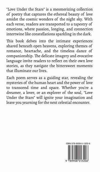 "Love Under the Stars" is a mesmerizing collection of poetry that captures the ethereal beauty of love amidst the cosmic wonders of the night sky. With each verse, readers are transported to a tapestry of emotions, where passion, longing, and connection intertwine like constellations sparkling in the dark. This book delves into the intimate experiences shared beneath open heavens, exploring themes of romance, heartache, and the timeless dance of companionship. The delicate imagery and evocative language invite readers to reflect on their own love stories, as they navigate the bittersweet moments that illuminate our lives. Each poem serves as a guiding star, revealing the mysteries of the human heart and the power of love to transcend time and space. Whether you're a dreamer, a lover, or an explorer of the soul, "Love Under the Stars" will ignite your imagination and leave you yearning for the next celestial encounter.