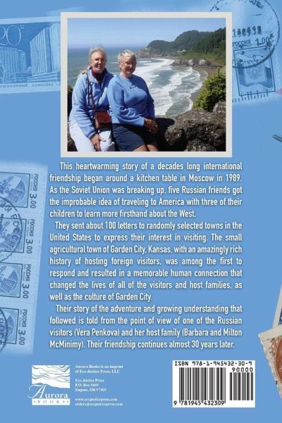 This heartwarming story of a decades long international friendship began around a kitchen table in Moscow in 1989. As the Soviet Union was breaking up, five Russian friends got the improbable idea of traveling to America with three of their children to learn more firsthand about the West. They sent about 100 letters to randomly selected towns in the United States to express their interest in visiting. The small agricultural town of Garden City, Kansas, with an amazingly rich history of hosting foreign visitors, was among the first to respond and resulted in a memorable human connection that changed the lives of all of the visitors and host families, as well as the culture of Garden City. Their story of the adventure and growing understanding that followed is told from the point of view of one of the Russian visitors (Vera Penkova) and her host family (Barbara and Milton McMinimy). Their friendship continues almost 30 years later.