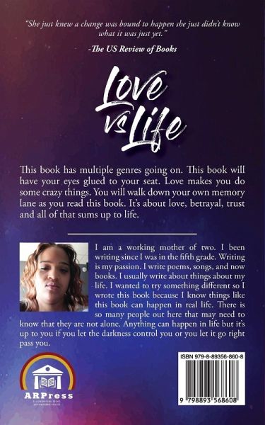 This book has multiple genres going on. This book will have your eyes glued to your seat. Love makes you do some crazy things. You will walk down your own memory lane as you read this book. It's about love, betrayal, trust and all of that sums up to life.