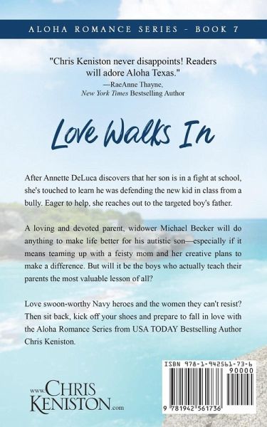 After Annette DeLuca discovers that her son is in a fight at school, she's touched to learn he was defending the new kid in class from a bully. Eager to help, she reaches out to the targeted boy's father. ¿ A loving and devoted parent, single dad Michael Becker will do anything to make life better for his autistic son-especially if it means teaming up with a feisty mom and her creative plans to make a difference. But will it be the boys who actually teach their parents the most valuable lesson of all? Love Page Turning Romance? Books you can share with friends and family? Swoon-worthy heroes and the women they can't resist? Then sit back, kick off your shoes and prepare to fall in love with the Aloha Romance Series from USA TODAY Bestselling Author Chris Keniston. MORE IN THE SERIES: Aloha Texas: Beach Read Edition Almost Paradise: Beach Read Edition Mai Tai Marriage : Beach Read Edition Dive into You : Beach Read Edition Look of Love: Beach Read Edition Love by Design: Beach Read Edition Love Walks In: Beach Read Edition Shell Game : Beach Read Edition Flirting with Paradise