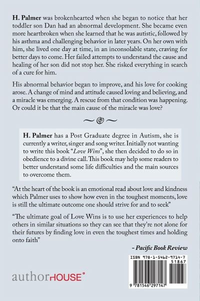 H. Palmer was brokenhearted when she began to notice that her toddler son Dan had an abnormal development. She became even more heartbroken when she learned that he was autistic, followed by his asthma and challenging behavior in later years. On her own with him, she lived one day at time, in an inconsolable state, craving for better days to come. Her failed attempts to understand the cause and healing of her son did not stop her. She risked everything in search of a cure for him. His abnormal behavior began to improve, and his love for cooking arose. A change of mind and attitude caused loving and believing, and a miracle was emerging. A rescue from that condition was happening. Or could it be that the main cause of the miracle was love?